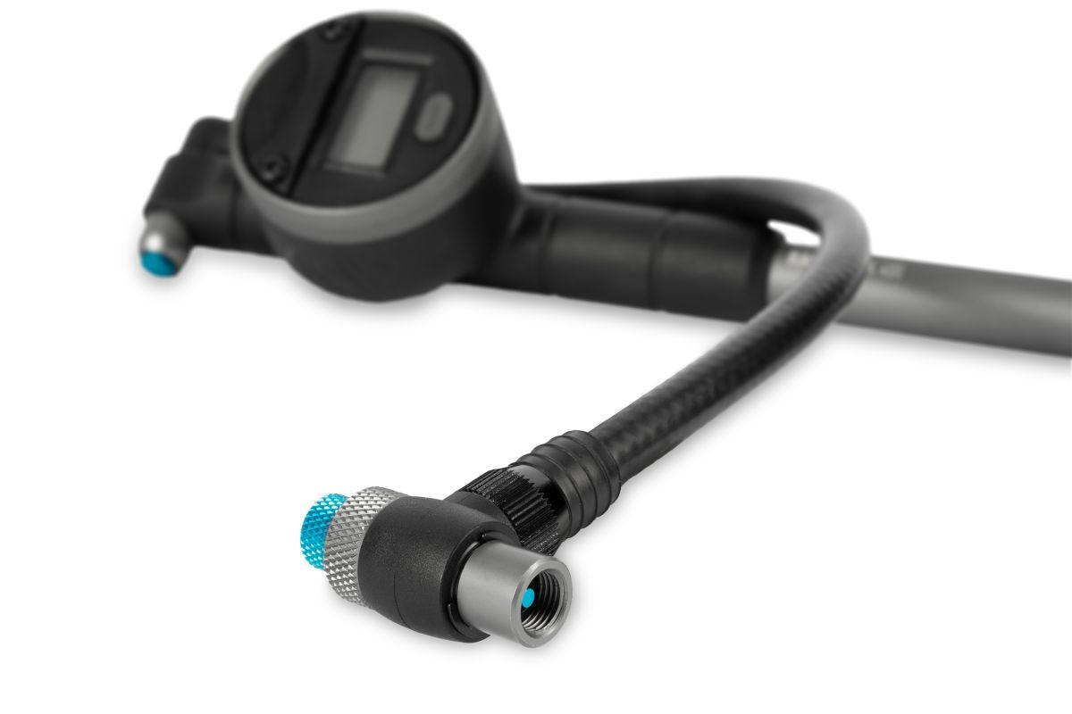 Dämpferpumpe mit 2-stufigem Schrader-Ventilkopf, speziell für höhere Drücke, NF Ergonomics Griff, digitales Präzisionsmanometer mit Hintergrundbeleuchtung, Luftablass-Ventil, 400 psi max.