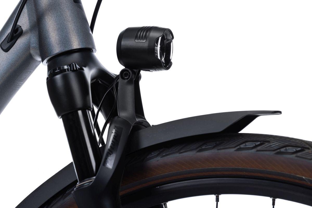 LED-Frontlicht für Dynamo, StVZO zugelassen, 50 Lux, Eingangsspannung 6V (AC), Nennleistung 2,4 W, 80 cm Lichtkabel zu Dynamo, 40 cm Lichtkabel zu Rücklicht, inkl. Gabelhalterung Universal HPP, inkl. K-Reflektor, Standlichtfunktion, Auto-On Funktion, Schutzklasse IPX5