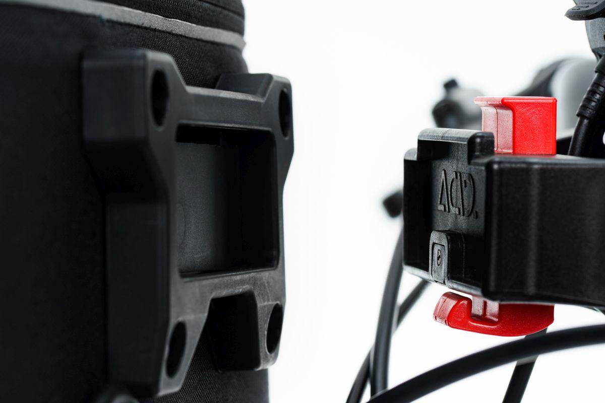 Der FILink Adapter ermöglicht das einfache und schnelle Anbringen von allen ACID FILink Front Taschen und Körben. Diese kannst du dank eines einfachen Klick-Mechanismus innerhalb von wenigen Sekunden am Lenker einhängen oder durch Drücken der roten Taste wieder lösen. Eine zusätzliche Draht-Sicherung garantiert dir einen sicheren Halt am Lenker.