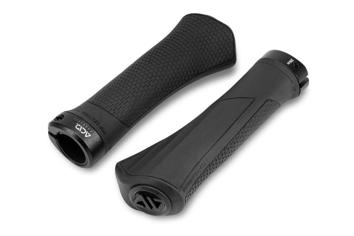 NF Ergonomics Philosophie angewandt auf ein sportliches und unterstützendes Fahrerlebnis, Curved Contour Miniflügel zur Unterstützung des Handgelenks, Traction Waves auf der Unterseite für einen besseren Halt, Aluminium Innenklemmung, In zwei Größen erhältlich, ACID GILink zur Montage von Zubehör Teilen wie Bar Ends oder Spiegeln