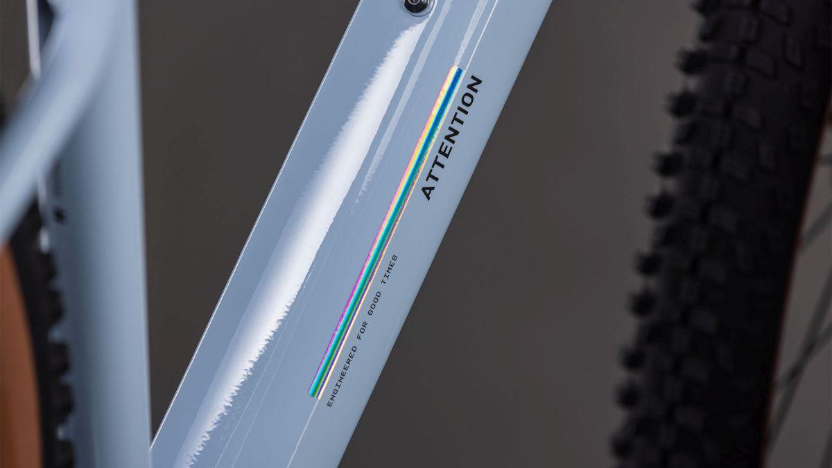 Der Attention Rahmen besticht mit seinem supercleanen Look – verantwortlich dafür: die im Smooth Welding Verfahren hergestellten Verbindungen an Steuer- und Sattelrohr. Außerdem haben wir ein geschraubtes Tretlager verbaut und die Züge ins Innere verlegt. Es gibt sogar eine Aufnahme für Flat Mount Scheibenbremsen, die nahtlos in unsere Seitenständeraufnahme integriert ist. Montagepunkte für ACID Schutzbleche und Gepäckträger sind auch mit dabei. Die spezielle Geometrie mit einem niedrigeren Oberrohr für superzuverlässiges Handling lässt viel Platz für breite, griffige, komfortable 2.25 Zoll Reifen. Dazu ist unser Size Split System breit aufgestellt – so finden alle das für sich und ihre Anforderungen optimal passende Attention.