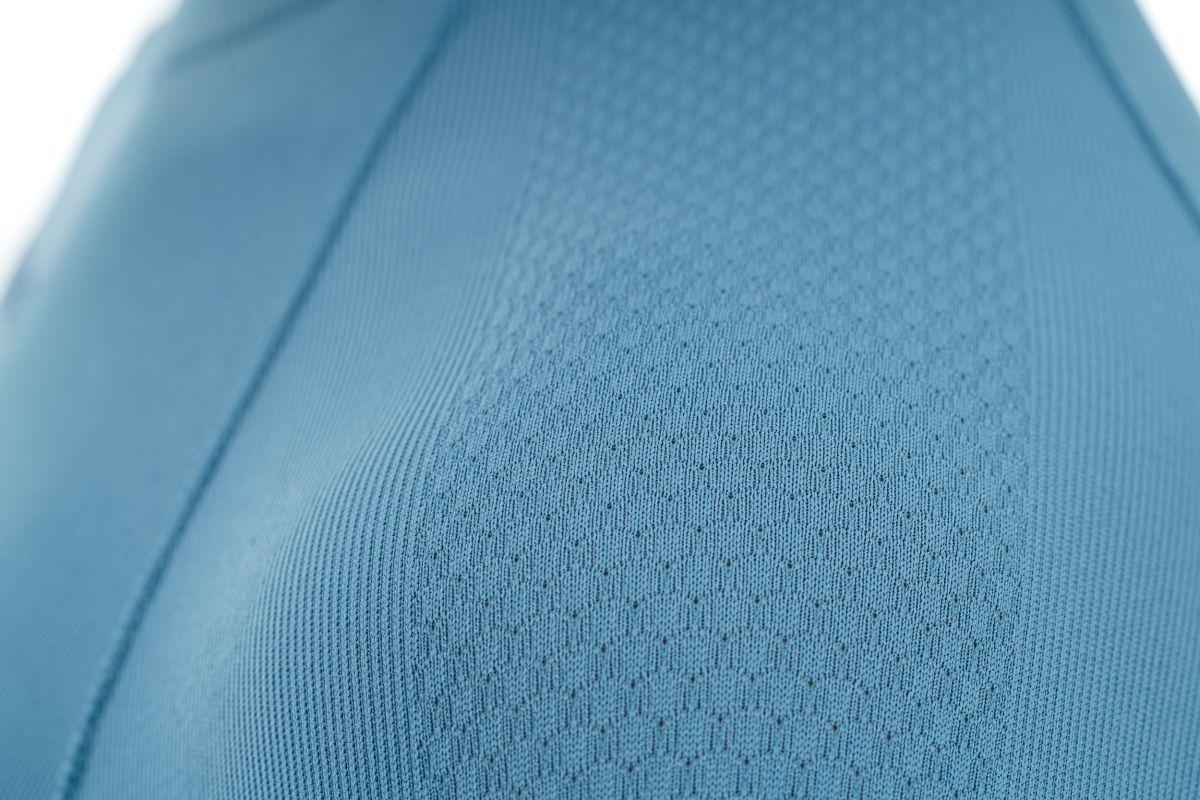 nahtlose Verarbeitung, ergonomischer Schnitt mit Stützzonen, hoher, eng anliegender Kragen, wärmend, Model ist 190 cm groß, Model trägt Größe M/L