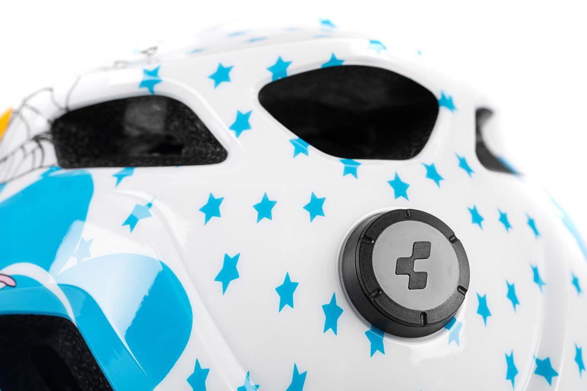 Kinder- und Jugend-Helm, 11 große Belüftungsöffnungen, Insektennetze im Frontbereich, einhändig bedienbares SNAP 360 Fit System für eine optimale Passform, In-Mould Konstruktion, Flat Divider für die bestmögliche Gurtbandführung, herausnehmbare und waschbare Polster, weitere Polsterstärke erhältlich, X-Lock Befestigungssystem, Licht nachrüstbar, Rastersteckschloss mit Kinnpolster, Natural Fit Konzept, glänzendes Finish