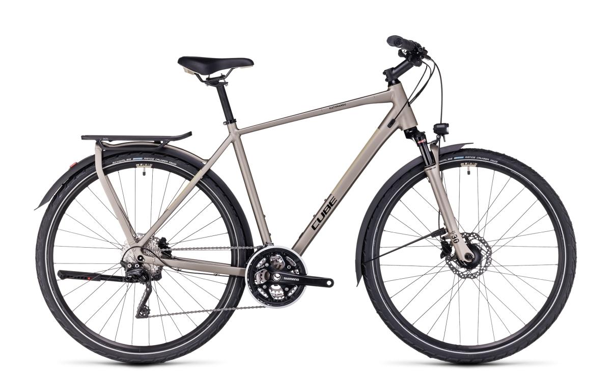 Das Kathmandu Pro hat alles, was man braucht, und kommt ohne unötigen Schnickschnack aus. Mit dabei sind der überarbeitete integrierte Gepäckträger, lange Schutzbleche, Vorder- und Rücklichter und der CUBE FM Seitenständer. Das Bike ist aber nicht nur ein super Begleiter für den Alltag, sondern stellt dank seiner robusten Konstruktion auch auf langen Strecken seine Qualität unter Beweis. Komfortabel: die Suntour Luftfedergabel, die sämtliche Schläge von Buckeln oder Schlaglöchern auf der Strecke wegschluckt wie nichts. Die breit gefächerte, superzuverlässige Shimano 3x10-Gang Schaltung macht jede Route zum Genuss. Dazu passende hydraulische Shimano Scheibenbremsen verzögern das Bike sicher und souverän, bei jedem Wetter und selbst bei voller Beladung. Ob Großstadtdschungel oder Outback – das Kathmandu Pro ist live dabei!