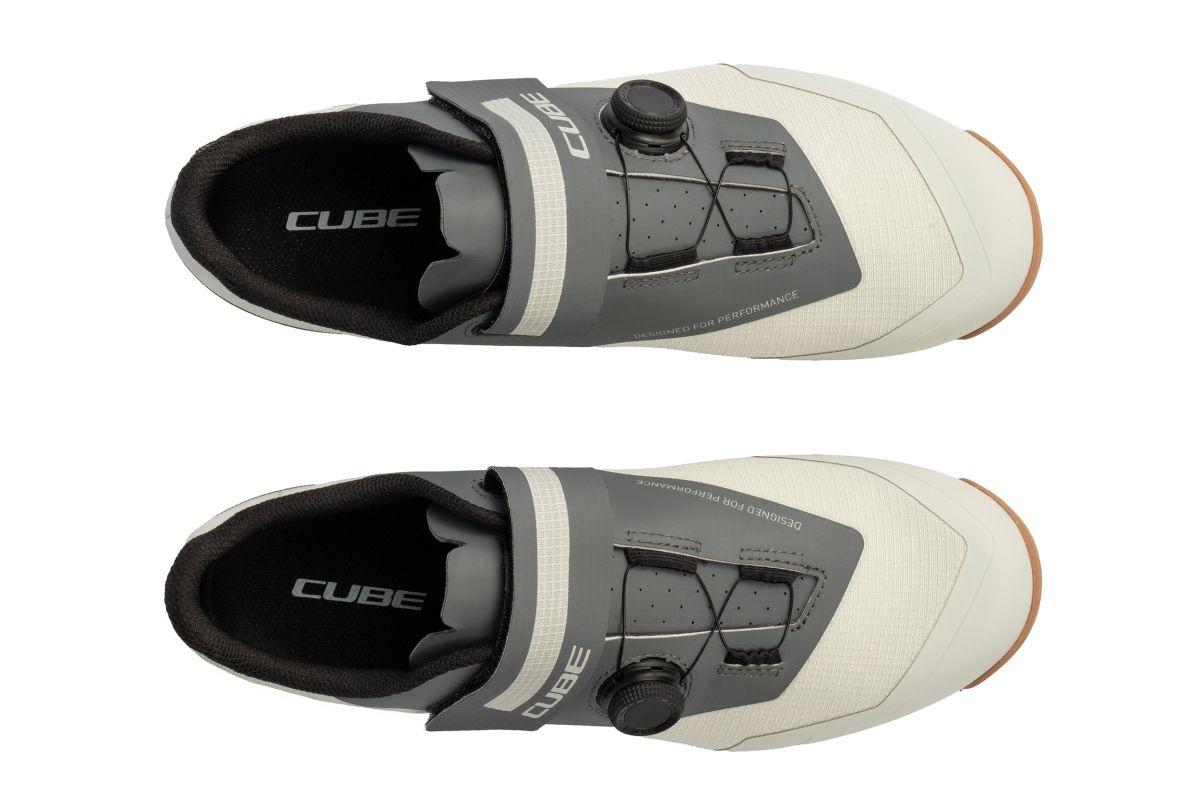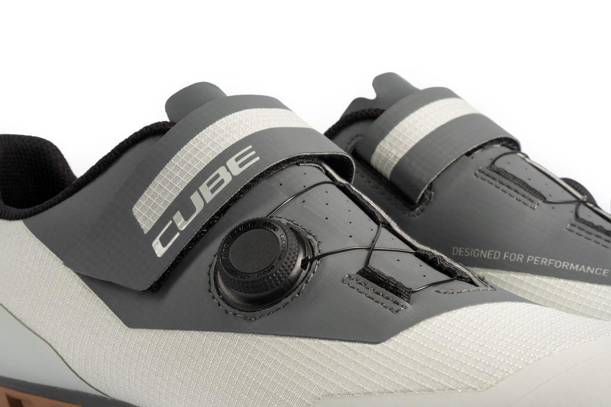 Der CUBE PEAK Schuh vereint das Beste aus beiden Welten für Gravel-, Cyclocross- und Marathonfahrer: Eine steife Außensohle aus glasfaserverstärktem Nylon sorgt zusammen mit einem schnellen, sicheren Disc-Verschluss für eine super-effiziente Kraftübertragung. Die Sohle ist so gestaltet, dass sie exzellenten Grip und ausreichende Flexibilität beim Gehen bietet. Das Obermaterial aus PU und Ripstop ist robust, während eine verstärkte Zehenbox und Fersenkappe ausgezeichneten Schutz in diesen Bereichen bieten. Die A-TRACTION Sohle besteht aus einer neuen, extra haftenden Gummimischung für optimale Traktion auf Pedalen und verschiedenen Untergründen. Zusätzlich sorgt eine NF Ergonomics-Innensohle für optimierte Druckverteilung und Polsterung, was auch auf langen Fahrten oder bei Rennen besten Komfort gewährleistet.