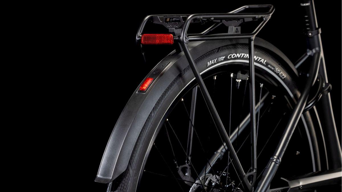 Die wichtigsten Aspekte bei der Entwicklung der CUBE Bikes: Innovation, Form und Funktion. Das bedeutet, dass wir unnötigen Schnickschnack konsequent weglassen. Ein sehr gutes Beispiel hierfür ist das Supreme RT Hybrid Deluxe EX 625, das mit einer Rücktrittbremse in Kombination mit leistungsstarken hydraulischen Scheibenbremsen auf die Straßen der Stadt kommt. Warum Rücktrittbremse? Weil sie praktisch und direkt per Pedal zu bedienen ist, was die Sicherheit erhöht. Ebenso praktisch sind der cleane, geräuscharm arbeitende, wartungarme Gates Zahnriemen, die Schutzbleche, die Lichtanlage, der Seitenständer und: der semi-integrierte Gepäckträger. Für ein Plus an Komfort sorgen die Federgabel und der verstellbare Vorbau – und natürlich die 8-Gang Nabenschaltung von Shimano in nahtloser Zusammenarbeit mit dem Bosch Active Plus Motor, den ein 625 Wh Akku zuverlässig vorwärtstreibt.