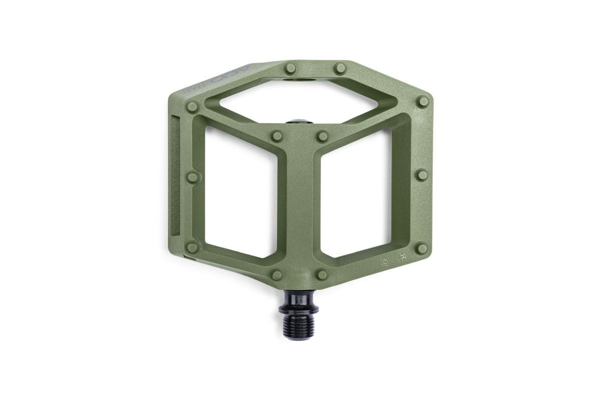 leichtes Flat-Pedal, Nylon-verstärkter-Kunststoff-Körper und CrMo Achse, angefaste Kanten für erhöhte Bodenfreiheit in Kurven, große Standfläche, flache Bauweise, zwölf Pins pro Seite, LSL-Bushing, integrierte Reflektoren