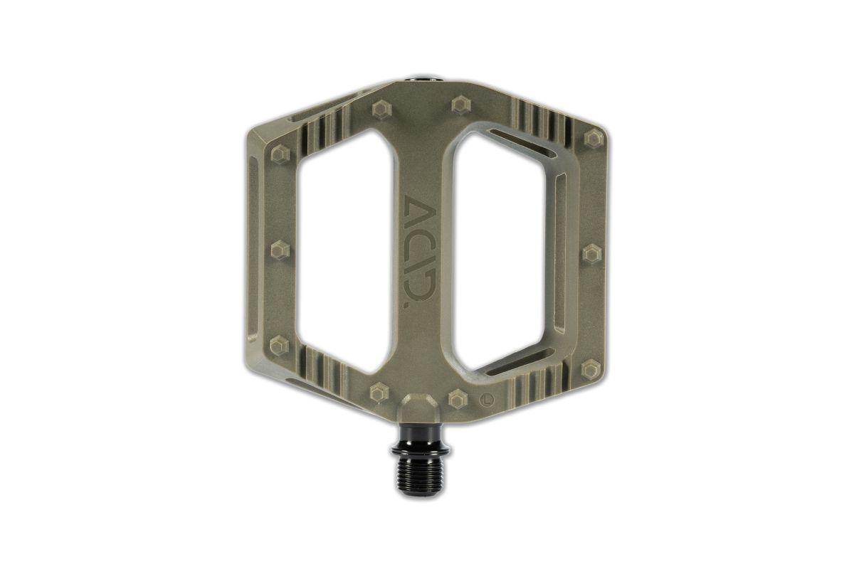 Verfügbar in vier Farben sowie in Schwarz, lassen sich die ACID Pedale FLAT C6-ZP farblich passend und stilvoll zu einer Vielzahl von CUBE Griffen und Fahrradrahmen abstimmen. Der aus einem technischen Thermoplast gefertigte Pedalkörper besteht zu 20% aus recyceltem Material und verfügt über 10 große inmold Pins, die einen ausgezeichneten Grip für die Schuhsohle bieten – ideal für den MTB Einsatz. Die haltbare, CNC-gefräste Cr-Mo-Achse wird durch eine wartungsarme, doppelte DU-Buchsen Lagerung ergänzt.