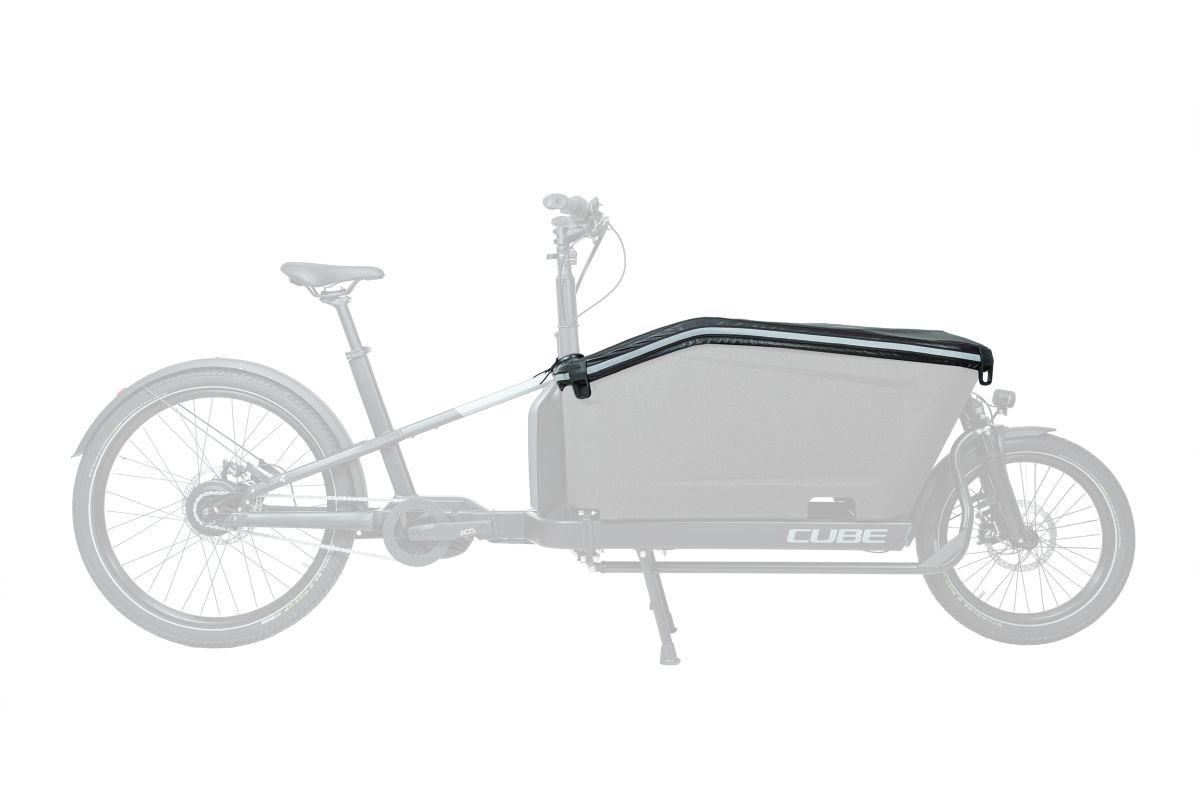 Keine Garage? Mit dieser Plane kannst du die Ladebox des CUBE CARGO HYBRID abdecken und draußen vor Regen und Schmutz schützen.