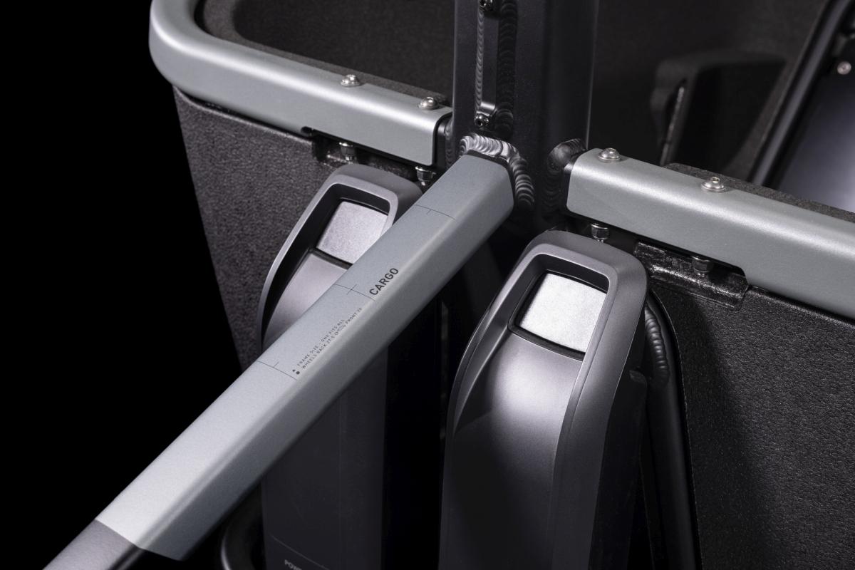 Die meisten Bikes sind so konzipiert, dass sie ihren Fahrer und vielleicht ein bisschen Gepäck von A nach B bringen. Nicht so unser Cargo Hybrid 500, das den Transport von weitaus größeren und schwereren Lasten mit bis 220 kg Systemgewicht schafft. Per optionalem Kindersitz ermöglicht es zudem die sichere und komfortable Beförderung von bis zu zwei Kindern. Zugleich legt das Chassis selbst bei voller Beladung ein stabiles, unkompliziertes Handling an den Tag, was sich vor allem beim teils herausfordernden Navigieren quer durch den Stadtverkehr bezahlt macht. Der kraftvolle Lasten-spezifische Bosch Motor – unauffällig unten am Sattelrohr positioniert – wird von einem 500 Wh starken Akku gespeist, außerdem gibt es Platz für einen weiteren 500 Wh Akku für noch größere Reichweite.