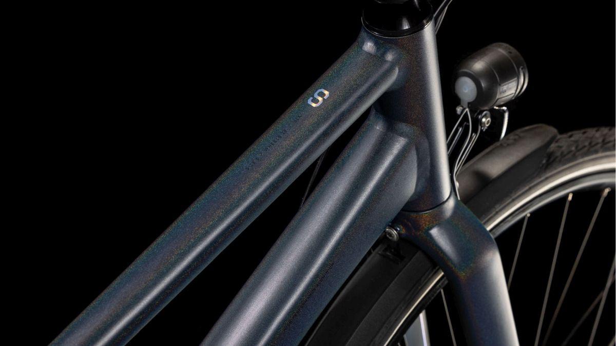 Der Trapezrahmen des Editor FE sieht auf den ersten Blick vielleicht unspektakulär aus, doch auf den zweiten zeigen sich seine Ästhetik und Detailverliebtheit. Über das Exzenter Tretlager kann der überaus praktische, wartungsarme Zahnriemen gespannt werden – die Rahmenöffnung für die Montage des Riemens befindet sich unaufällig oberhalb des Ausfallendes. Dazu kommt die serienmäßige Zubehör-Vollausstattung, bestehend aus Schutzblechen, Gepäckträger, Seitenständer und Lichtanlage. Ganz unauffällig und im Hintergrund sorgen die leichten doppelt konifizierten Rohrsätze – kombiniert mit einer steifen Gabel – für ein agiles Fahrverhalten.
