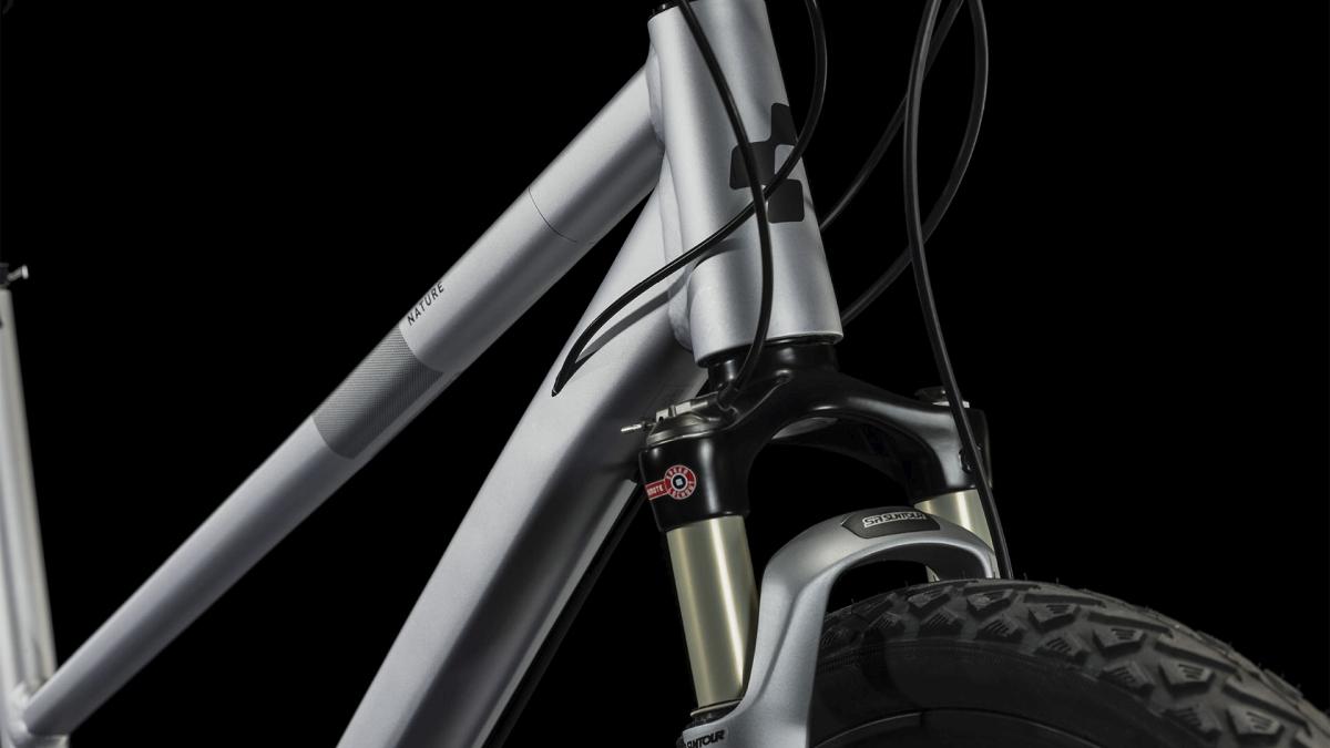 Wirklich hoher Fahrkomfort geht nur mit Federgabel, keine Frage, weshalb wir dem Nature EXC auch eine Luftfedergabel von Suntour spendiert haben. Sie lässt sich ganz einfach und präzise auf das gewünschte Level an Komfort und Kontrolle einstellen. Dazu wechselt die zuverlässige XT und Deore 3x10-Schaltung von Shimano leicht und geschmeidig von Gang zu Gang – so wird jeder Anstieg zum Kinderspiel. Maximale Bremskraft ist das Spezialgebiet der einfach zu bedienenden hydraulischen Shimano Scheibenbremsen, die bei jeder Witterung kräftig zupacken und das Bike kontrolliert anhalten. Jetzt braucht’s nur noch die perfekte nächste Route – und los geht's!