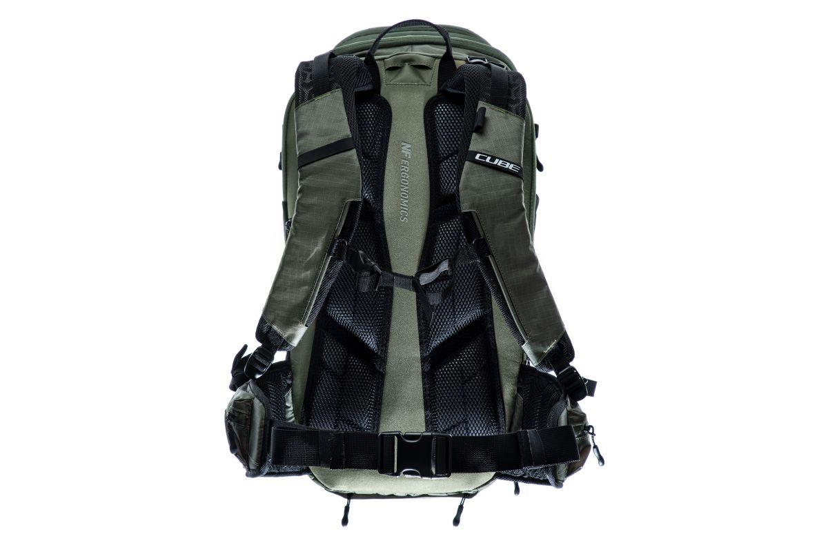 Ob für Transalp oder andere Mehrtages-Abenteuer: Der CUBE ATX 30, unser größter Rucksack im Portfolio, bietet viel Stauraum. Dank dem von CUBE entwickelten NF Ergonomics Rückensystem und gepolsterten Hüftgurt sitzt der Rucksack dabei immer noch optimal. Das Gewicht wird angenehm verteilt, der Rücken ist gut polstert und belüftet. Dank MOLLE-System lässt sich zusätzlich die CUBE ZUBEHÖRTASCHE 1 oder CUBE ZUBEHÖRTASCHE 2 mit Klettbändern sicher am Rucksack fixieren. Und wenn mal weniger Klamotten dabei sind, wird der Rucksack mit den seitlichen Kompressionsriemen einfach kompakt gezogen. Dank sinnvoller Fächeraufteilung, zwei Werkzeugfächern und Smartphone-Seitenfach hast du alles Wichtigste parat. Plus Raincover und Trinkblasenfach – da bleiben keine Wünsche offen.