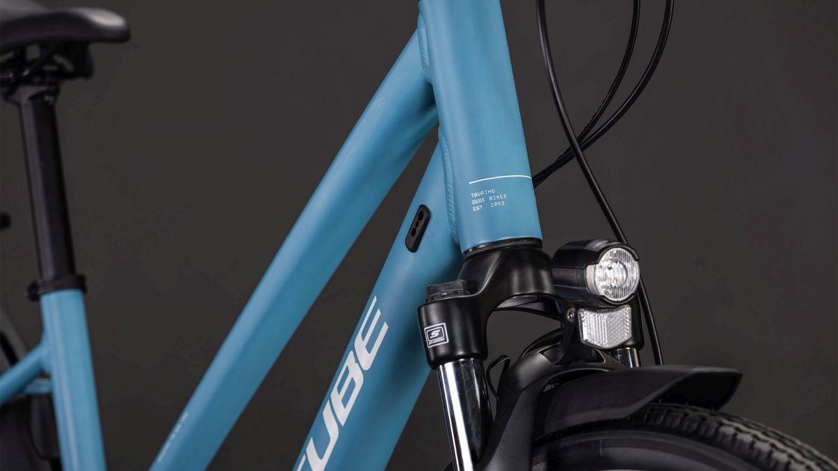 Das Herzstück eines Fahrrads ist zweifellos sein Rahmen – deshalb haben wir bei der Entwicklung des Touring auch wieder extra viel Sorgfalt walten lassen und Wert auf hohen Fahrkomfort und unkompliziertes Handling gelegt. Sein schlichtes Trapezdesign zeigt sich ebenso elegant wie stabil und sicher. Sauber ins Unterrohr verlegte Züge unterstreichen die cleane, aufgeräumte Optik der leichten, langlebigen, doppelt konifizierten Aluminiumrohrsätze. Dazu macht unsere Efficient Comfort Geometry ihrem Namen alle Ehre: Sie fährt sich zuverlässig, intuitiv und selbst auf den längsten Ausfahrten dauerhaft komfortabel. Was noch? Unser formschöner, stabiler semi-integrierter Gepäckträger 2.0, auf dem alles Platz findet, was auf Tour mit muss, und ein Flat Mount Seitenständer zum unkomplizierten Abstellen.