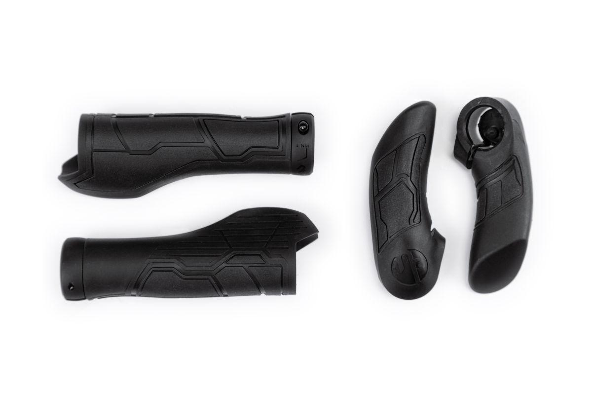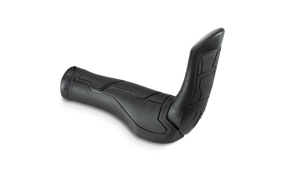 Natural Fit Philosophie angewandt auf Flexibilität und wechselnde Untergründe, Triple-Density Material, Auflage mit Shock X Material absorbiert hochfrequente Vibrationen, Innenklemmung, in zwei Größen erhältlich, hochwertige Cold Forged Aluminiumklemme, ergonomisch optimierte Dual-Density Barends medium, integrierte Klemmung